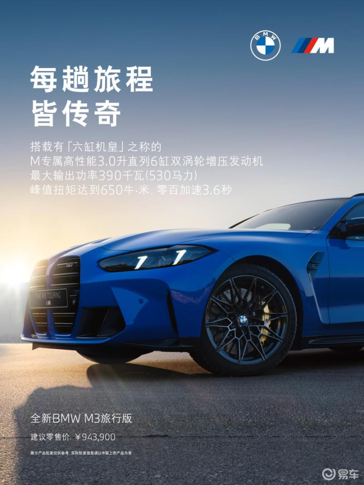 易车讯11月1日,全新宝马M3旅行版在2025BMWM热血嘉年华活动上正式上市,售价94.39万元。新车在外观与内饰进行了小幅调整,搭载3.0T双涡轮增压直列六缸发动机,百公里加速仅需3.6秒。
