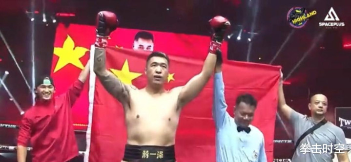 宣布胜利的一刹那,裁判高高举起了蒋一泽的手臂,身后的两位团队成员也将五星红旗举过头顶,共同庆祝这一振奋人心的激昂时刻,并希望将这一久违的喜悦与正欢度五一假期的全国观众分享,要知道蒋一泽已经是当今中国唯一的重量级金腰带拥有者,这场大捷来得实在太及时,其潜在意义不言而喻!